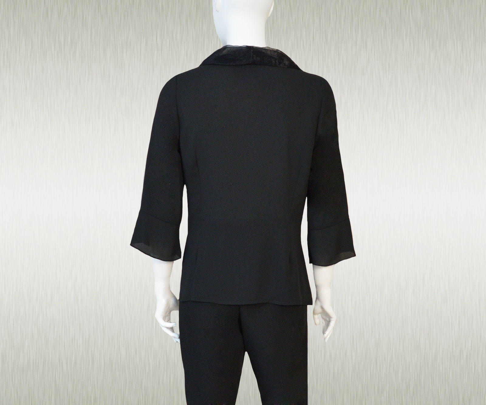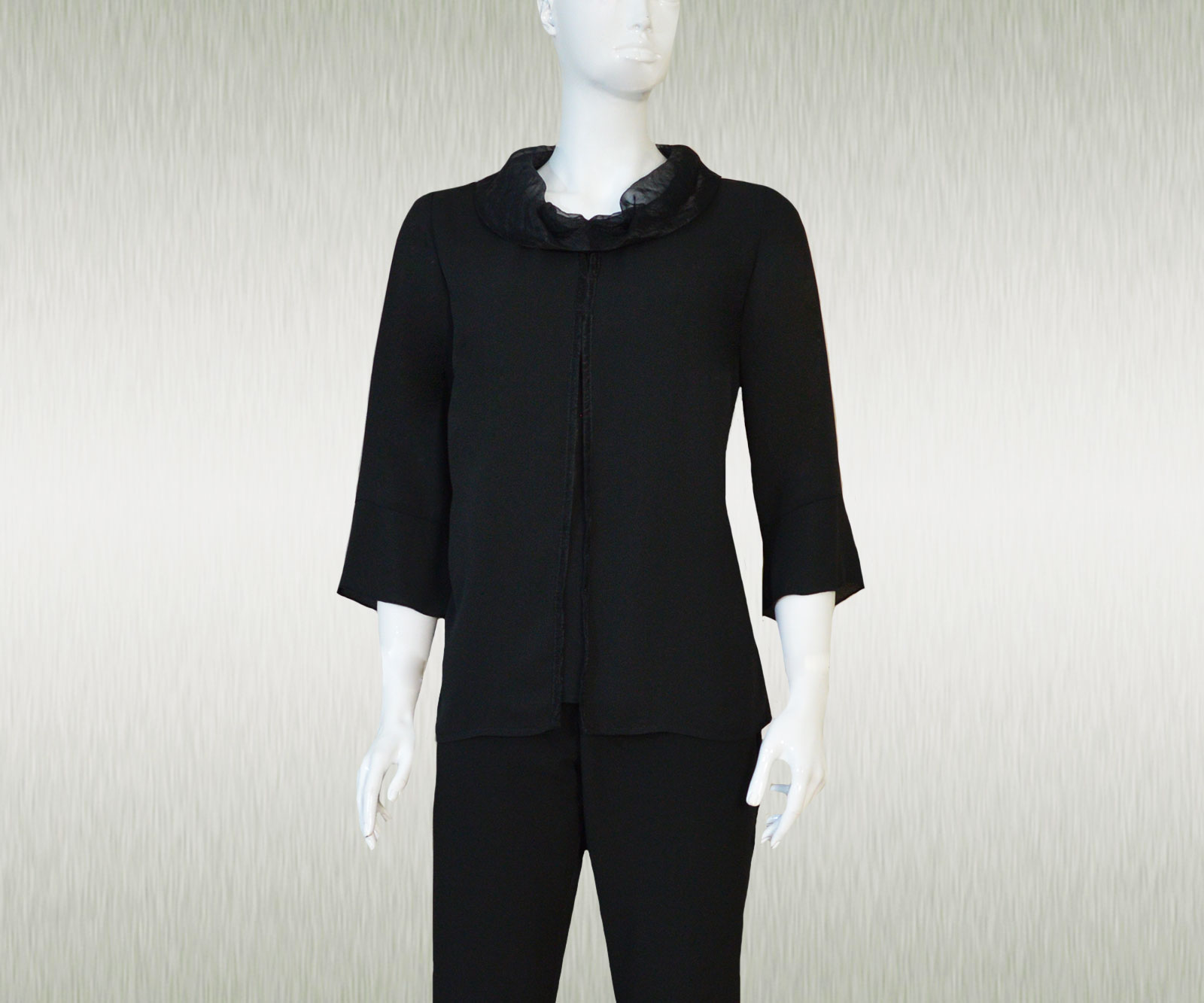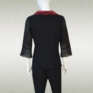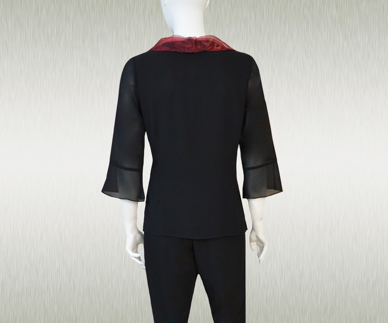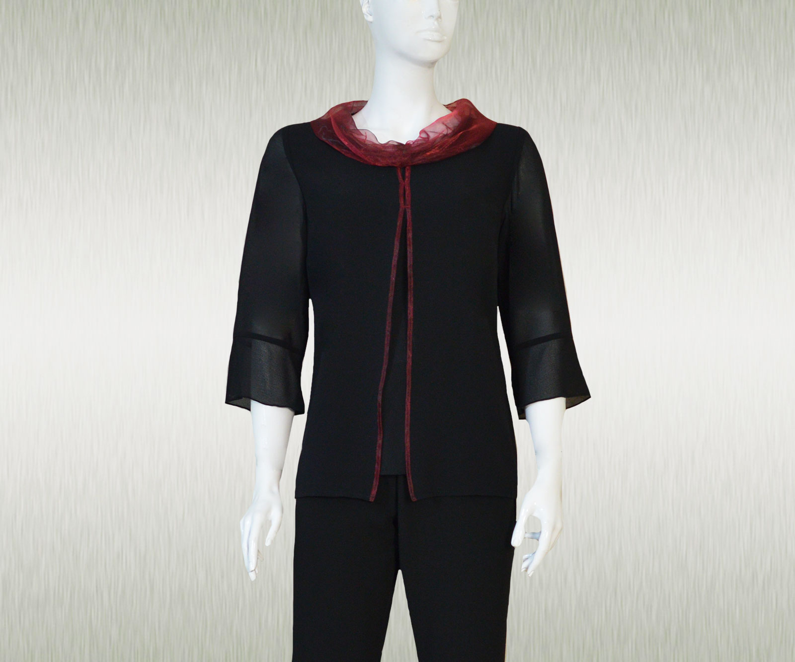 Elegantna bluza savršena uz crne svečane hlače. Dostupna u dvije varijante, jedna s crnom, a druga s bordo kragnom.