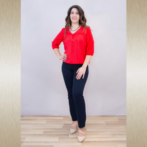 Elegantna viskozna bluza 3/4 rukava vrlo ugodna za nošenje. Dostupna je u crnoj, bež, crvenoj i bijeloj boji, bojama koje ćete lako uklopiti u razne poslovne, profinjene i svakodnevne modne kombinacije.