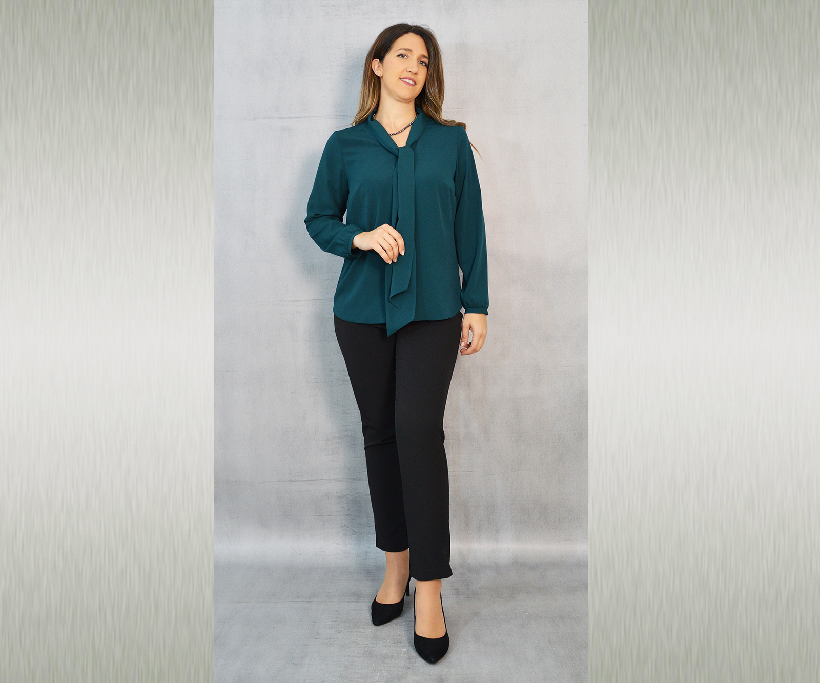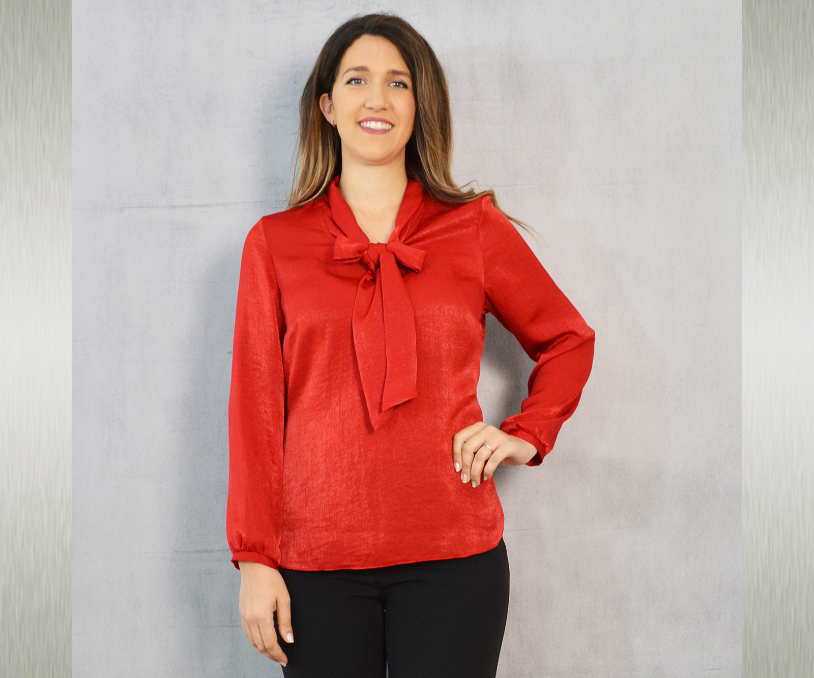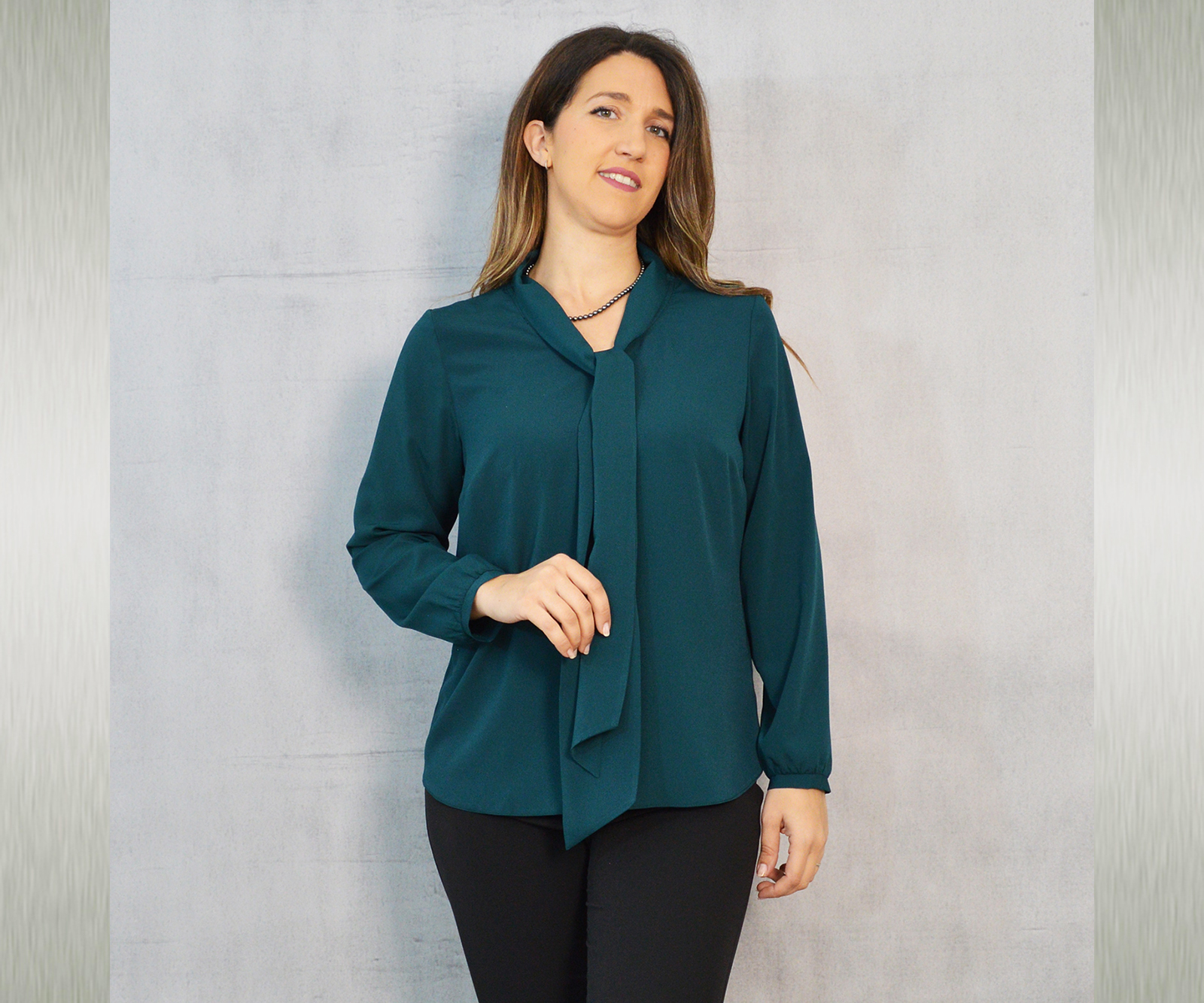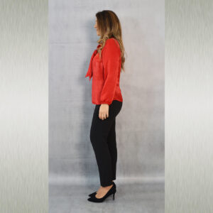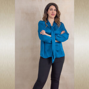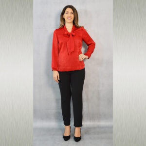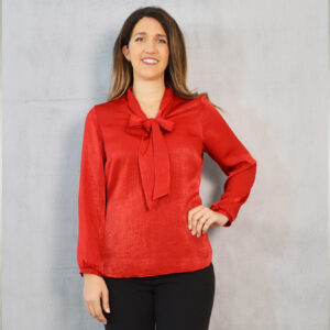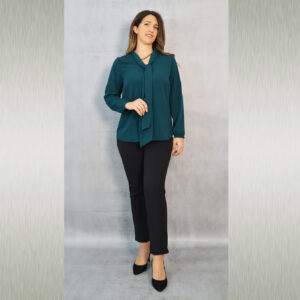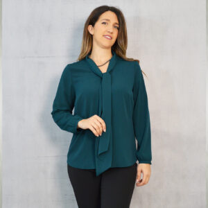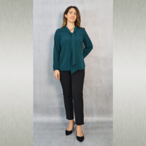 Elegantna jednobojna bluza savršena za kombiniranje uz svečane hlače ili suknju koje također možete pronaći u našoj ponudi. Odličan je odabir za svečane ili poslovne modne kombinacije. Dekorativna marama uz kragnu pogodna je za slaganje na razne načine.