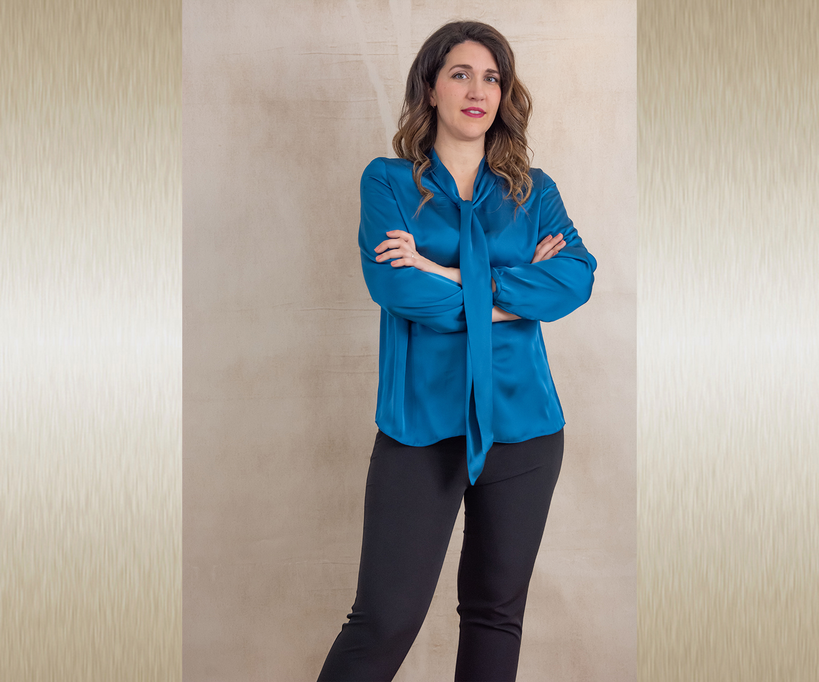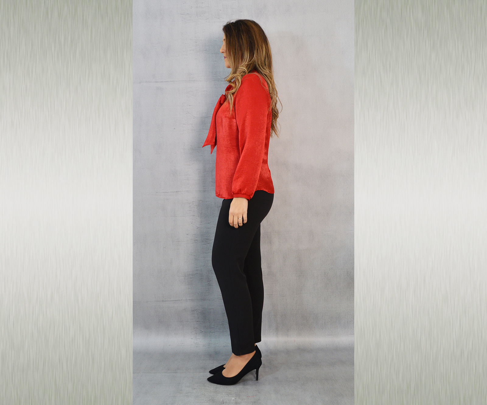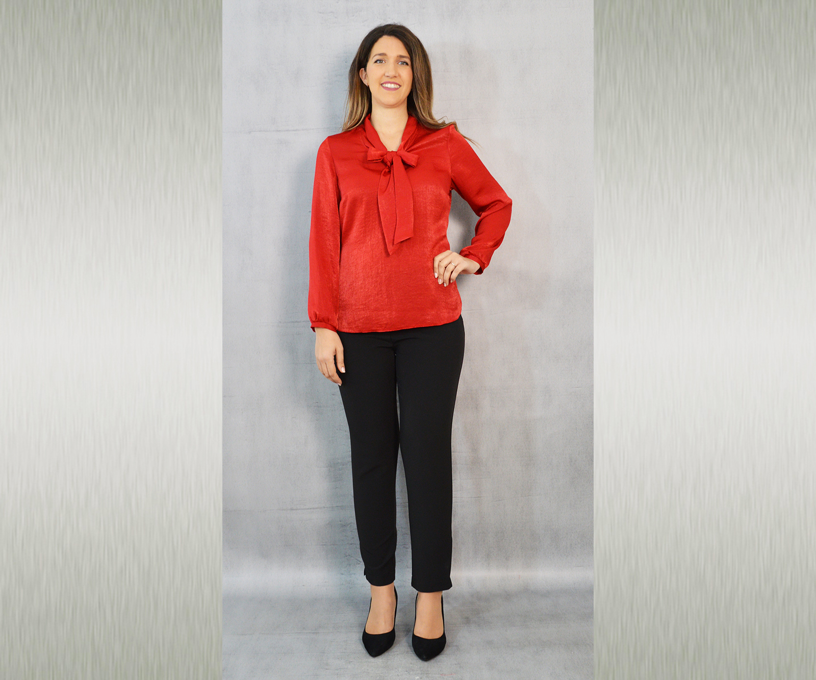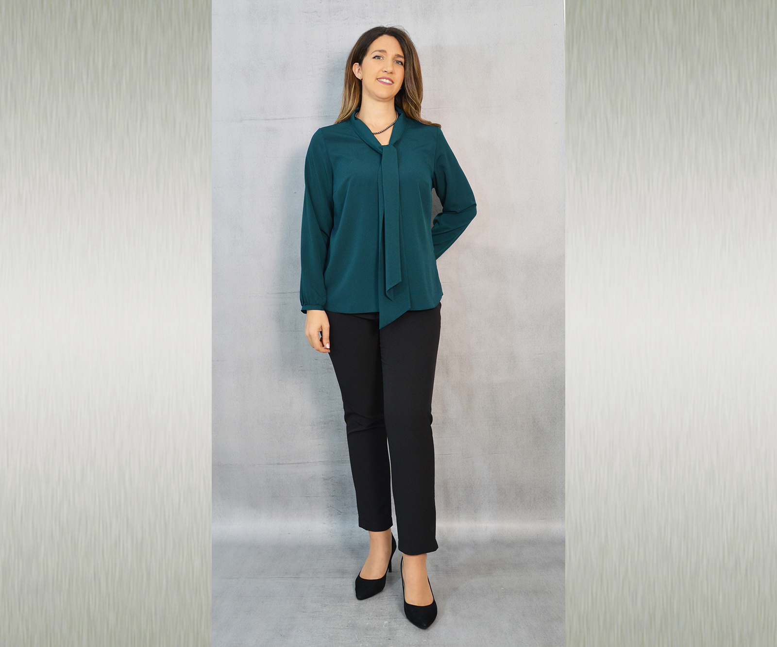 Elegantna jednobojna bluza savršena za kombiniranje uz svečane hlače ili suknju koje također možete pronaći u našoj ponudi. Odličan je odabir za svečane ili poslovne modne kombinacije. Dekorativna marama uz kragnu pogodna je za slaganje na razne načine.