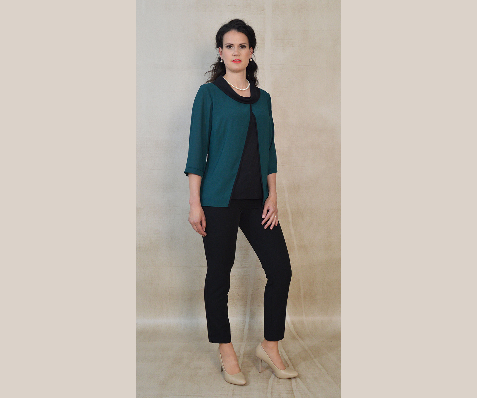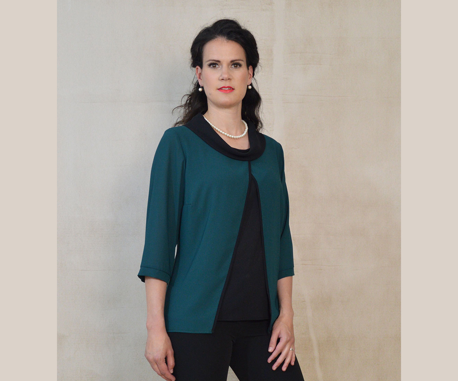 Elegantna jednobojna bluza na preklop s kragnom dostupna u čak četiri varijante. Vrlo profinjena i savršeno će odgovarati bilo uz hlače ili suknju.