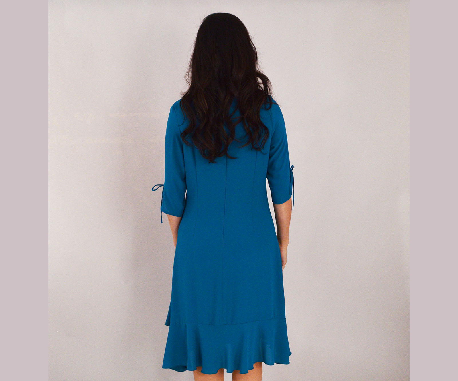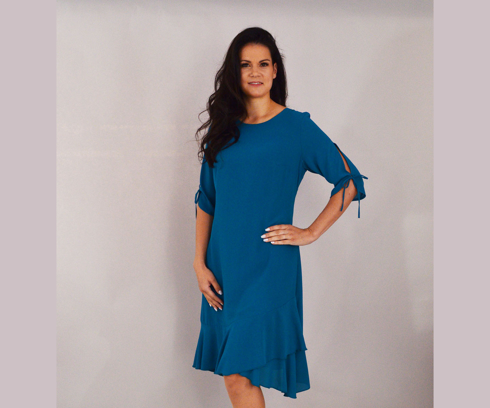 Elegantna haljina Borka s volanima i 3/4 rukavima te prorezom na rukavima vrlo je profinjena i odličan odabir za svečane prilike. Lepršava haljina modernog kroja napravljena je od kvalitetnog materijala i ugodna je za nošenje tijekom više sati.