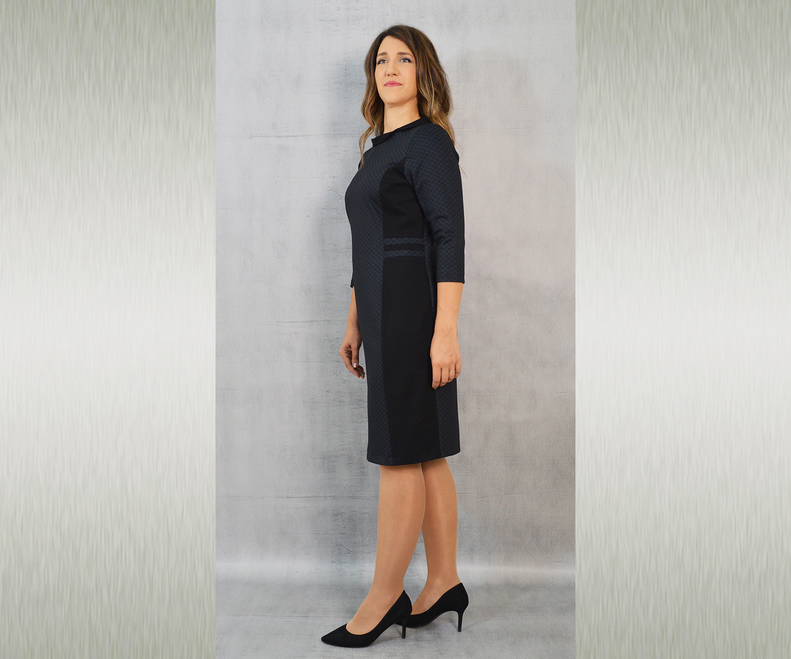 Elegantna haljina u kombinaciji sivih nijansi te kariranom, plavom i zelenom uzorku. Vrlo je ugodna za nošenje te u sebi sadrži elastin pa je prilagodljiva obliku tijela. Odličan je izbor za razne prilike u jesenskim danima.