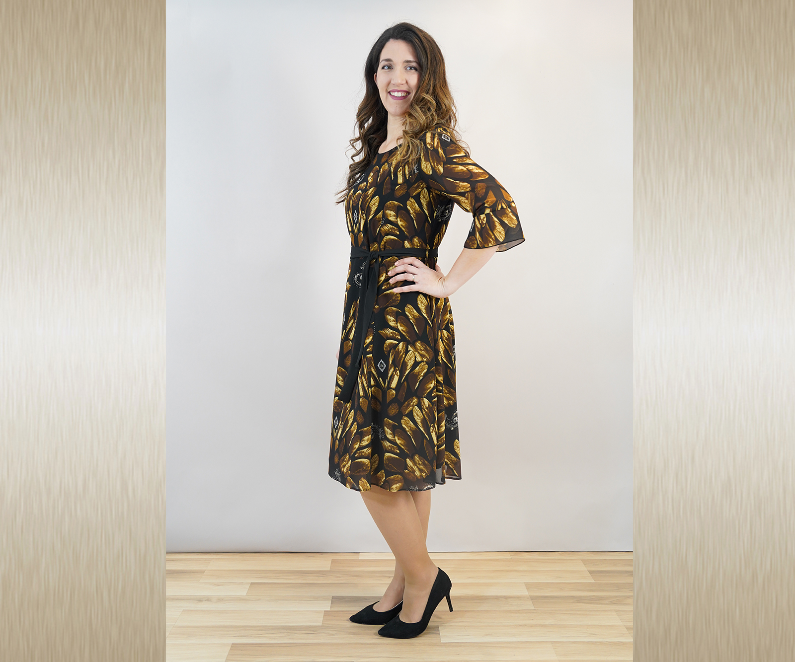 Svečana i elegantna haljina do koljena krojena u A oblik te će pristajati svakoj ženi. Dostupna je u više vrsta uzoraka i vrlo je profinjena za prilike u kojima želite zablistati.