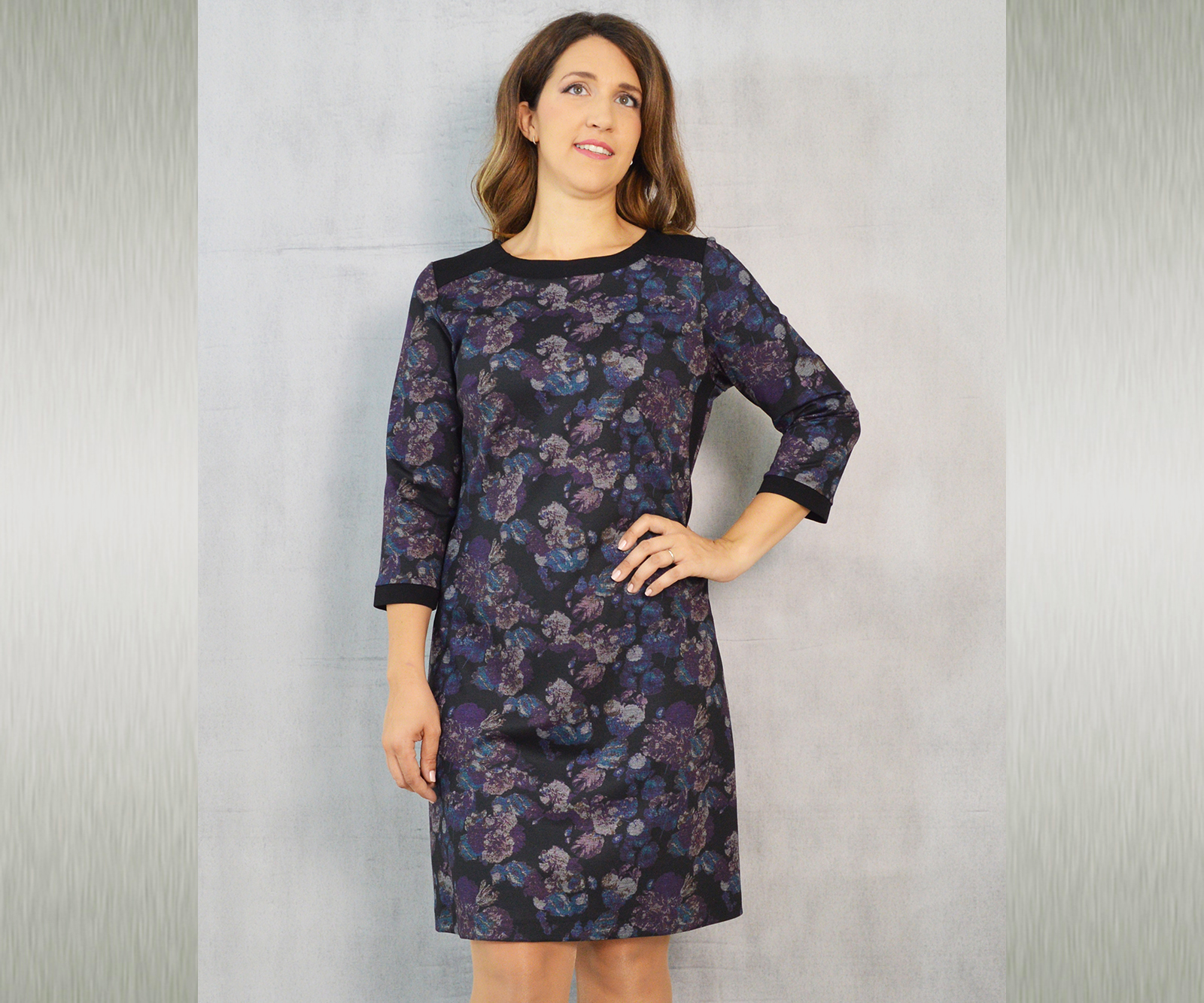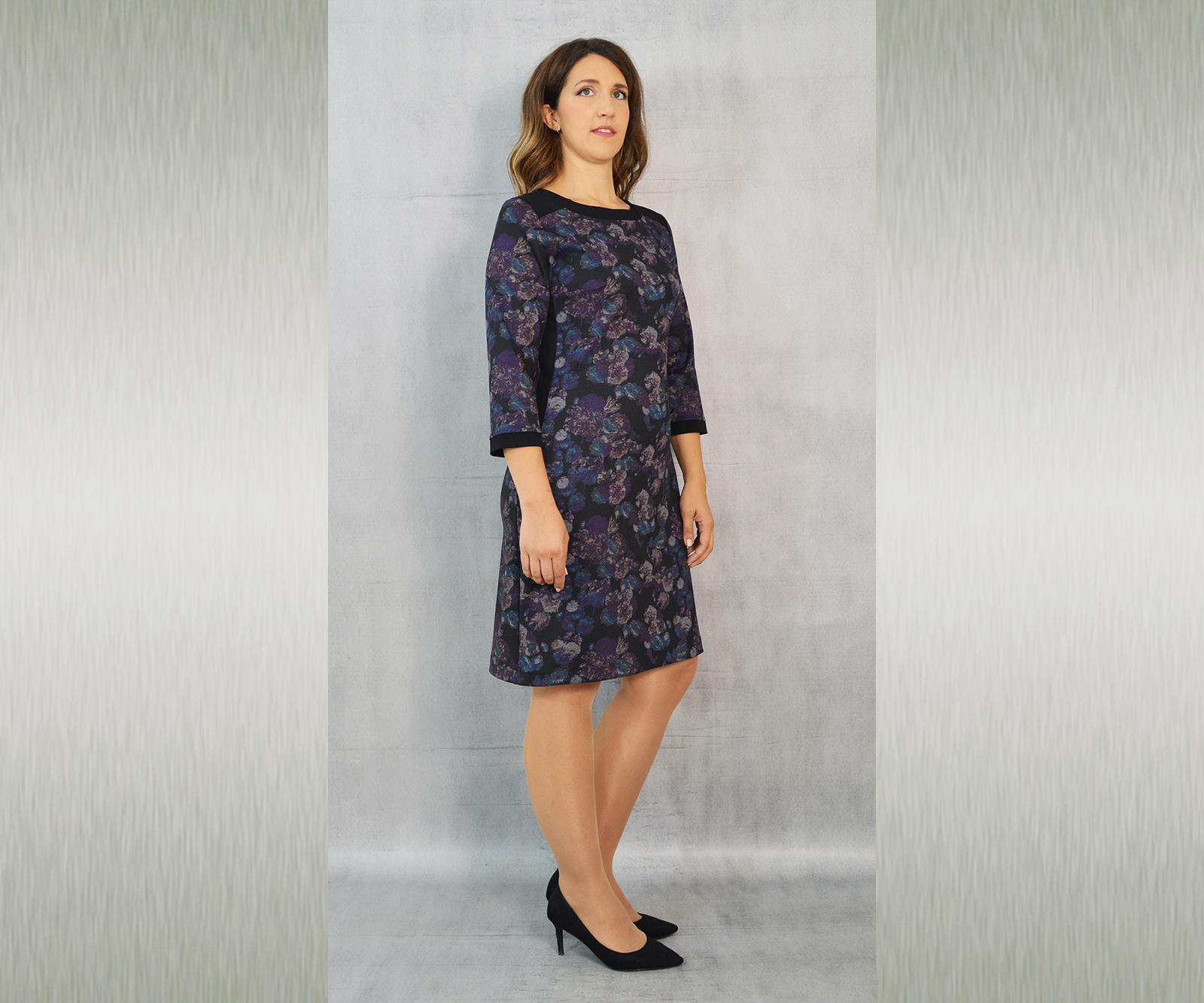 Haljina Sanja dostupna je u dvije varijante: kombinacije crne boje s plavim rombovima te u cvjetnoj. Napravljena je od punijeg materijala i vrlo je ugodna za nošenje, posebice u hladnijim danima. Rukavi duljine 3/4 daju joj na eleganciji i otmjenosti.