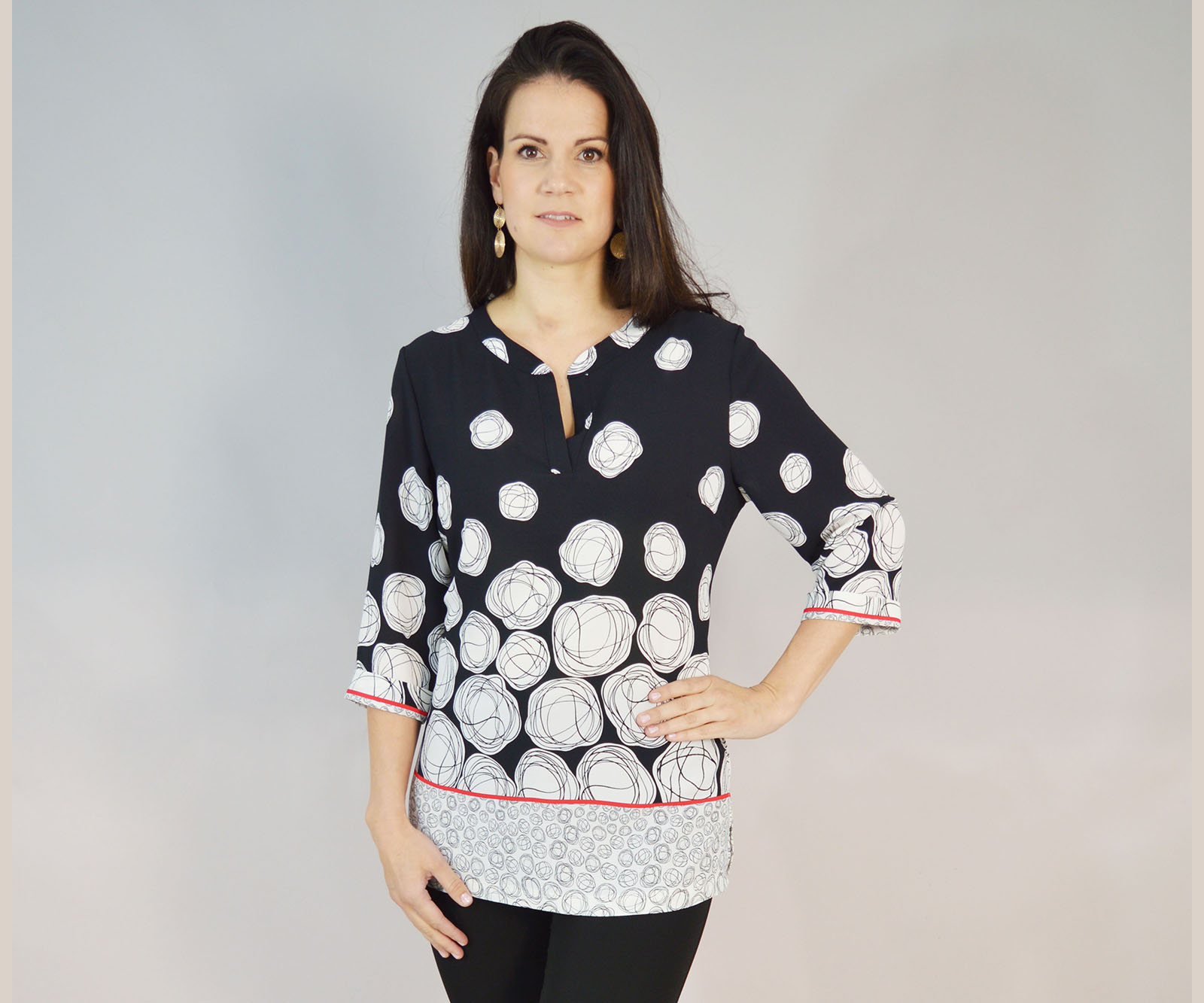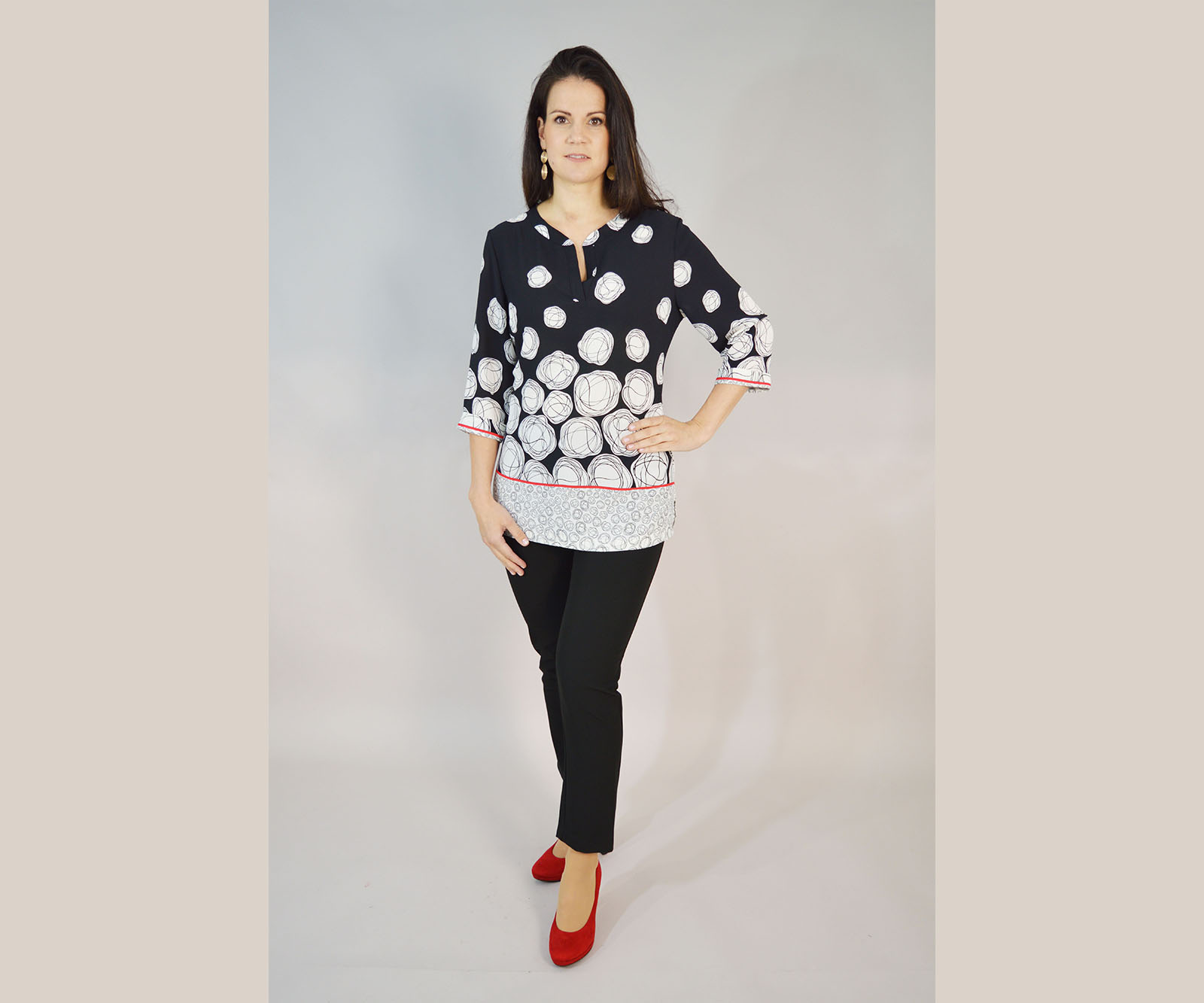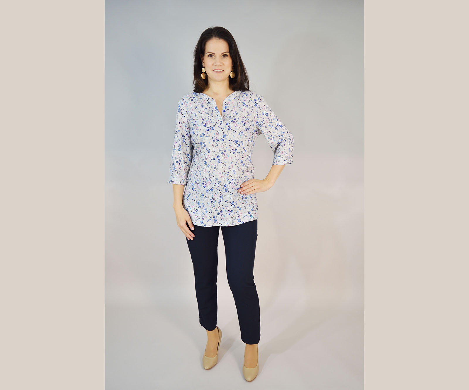 Bela je proljetna tunika s atraktivnim vedrim uzorcima idealnima za toplije dane. Napravljena je od stopostotne viskoze i vrlo je ugodna za nošenje. Isprobajte je i uvjerite se.