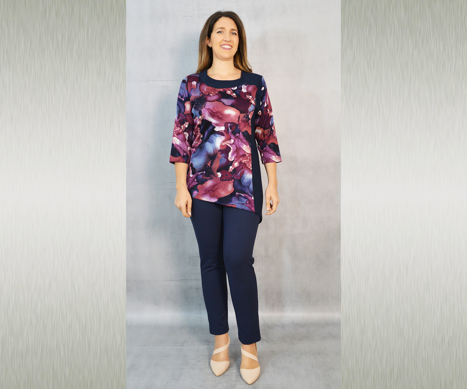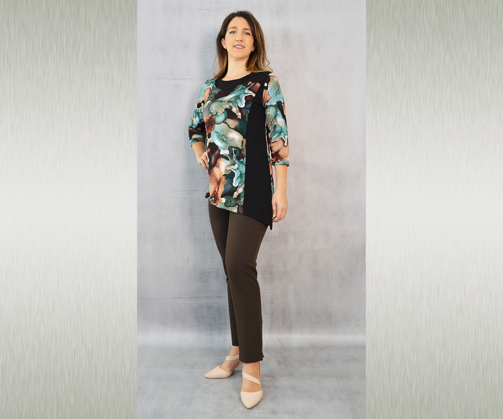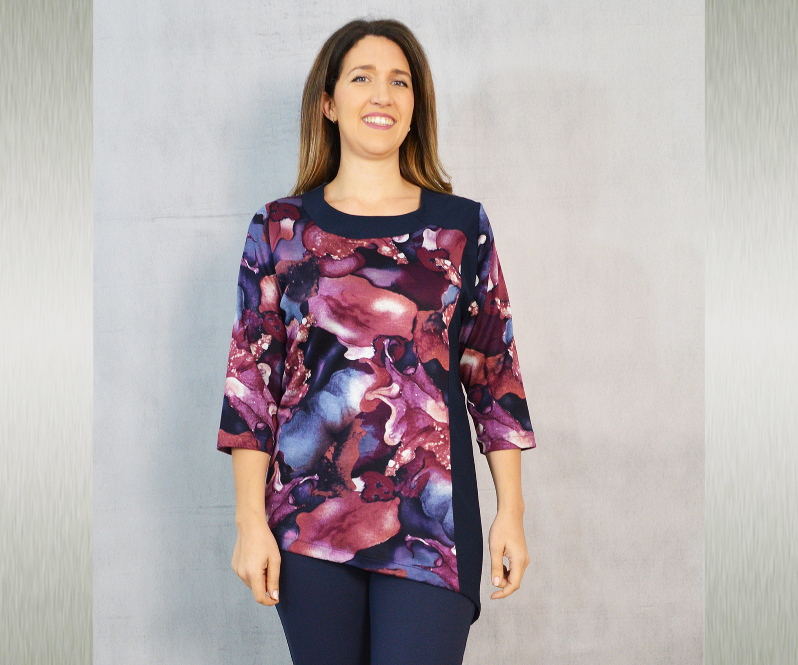 Viskozna elegantna tunika Dunja skladna je kombinacija modernog uzorka i jednobojne tkanine. Vrlo je ugodna za nošenje i savršena za razne prilike. Lako se može kombinirati uz crne ili plave hlače koje također možete pronaći u našoj ponudi u različitim modelima.