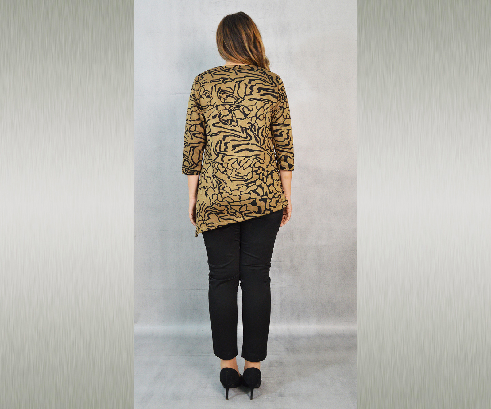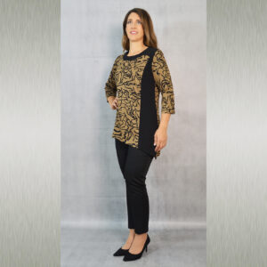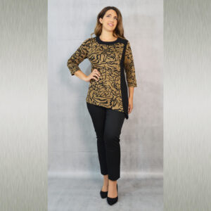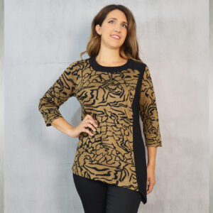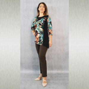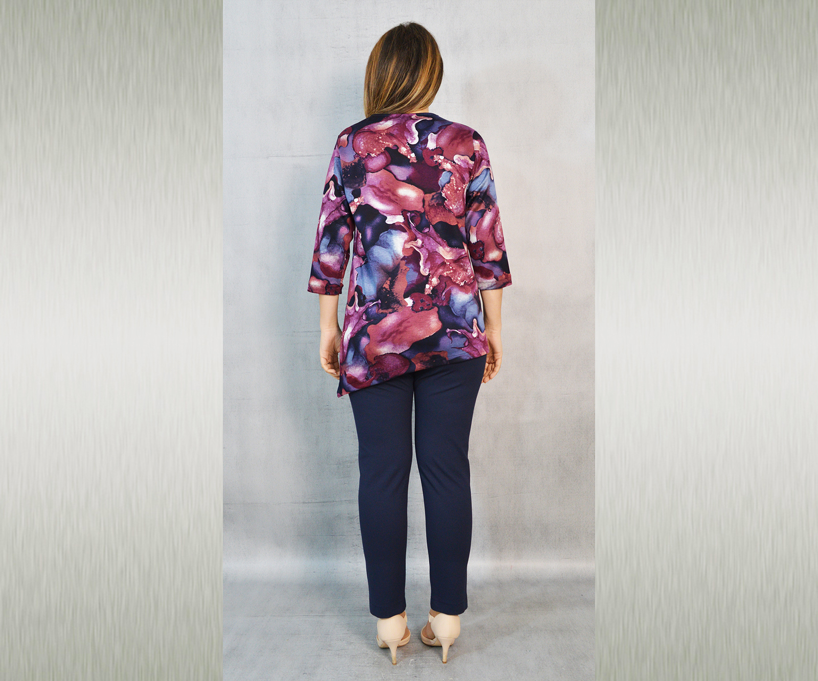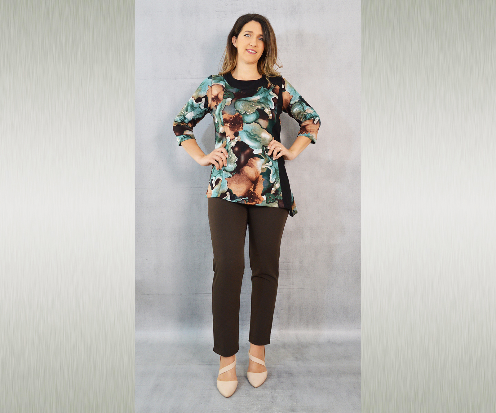 Viskozna elegantna tunika Dunja skladna je kombinacija modernog uzorka i jednobojne tkanine. Vrlo je ugodna za nošenje i savršena za razne prilike. Lako se može kombinirati uz crne ili plave hlače koje također možete pronaći u našoj ponudi u različitim modelima.