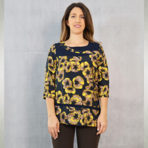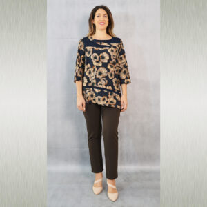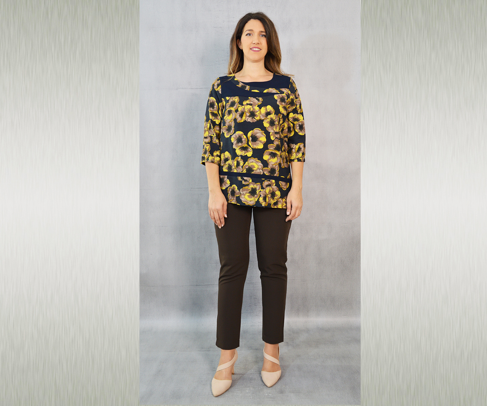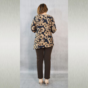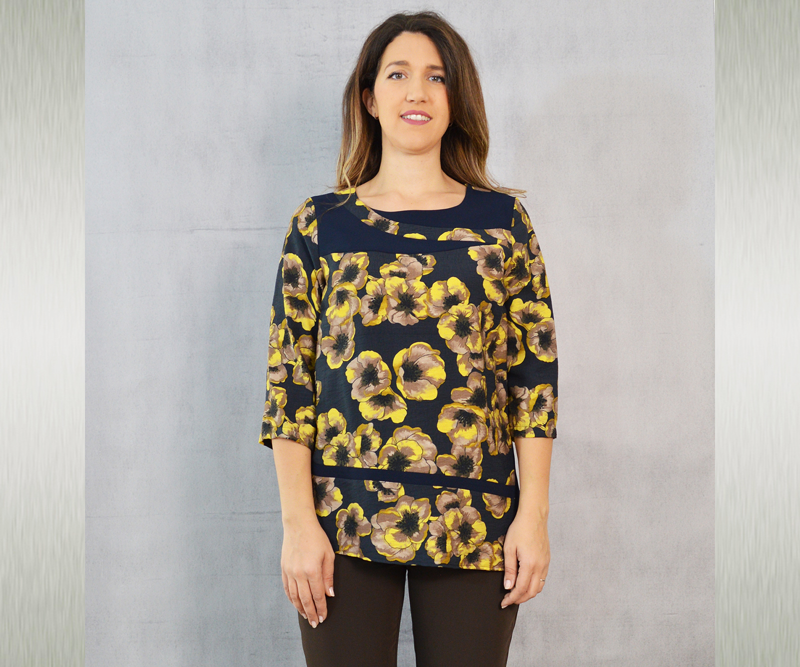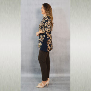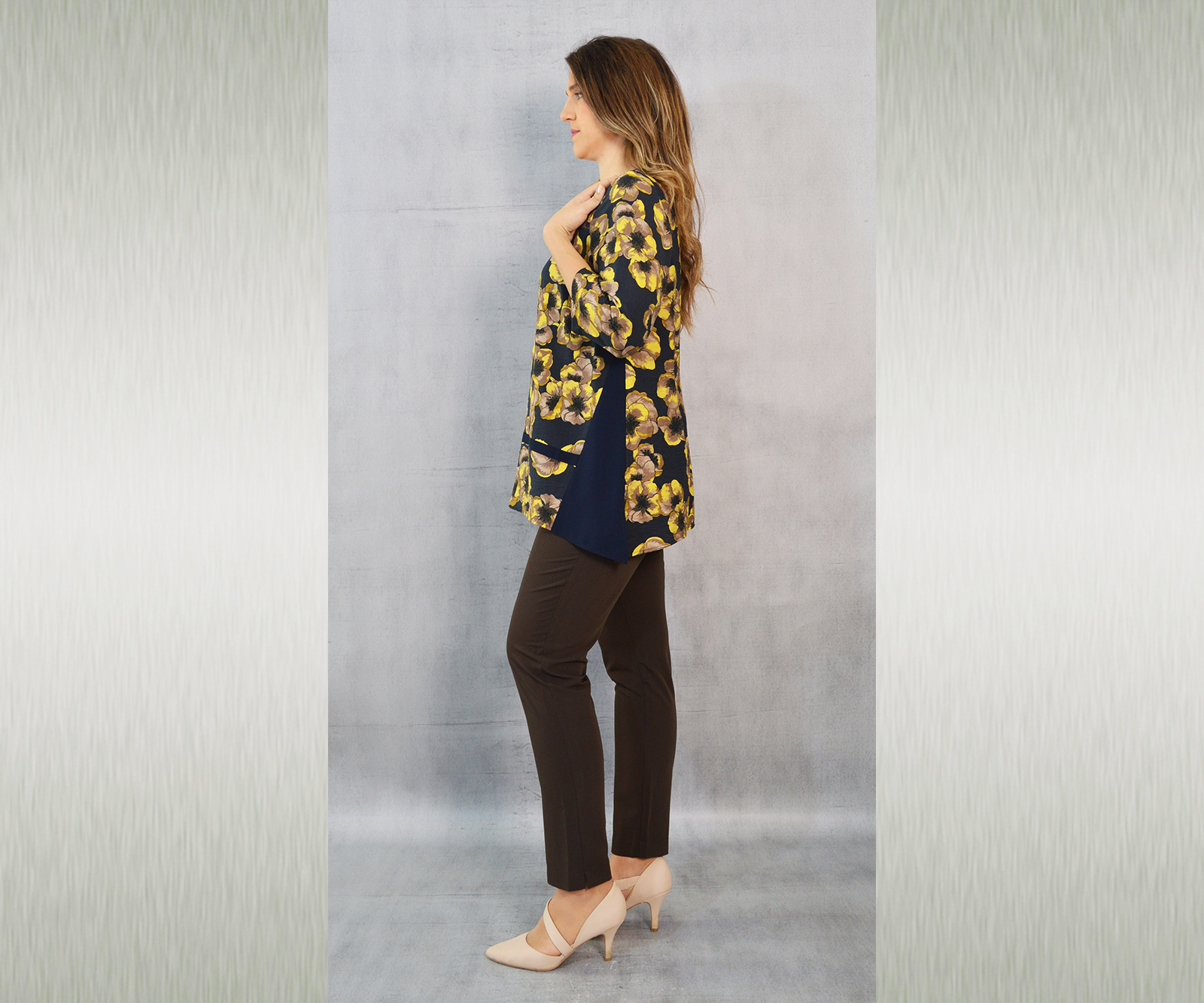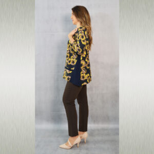 Tunika Milica dostupna je u tri uzorka u kombinaciji s jednobojnom tamnoplavom tkaninom. Asimetričnog je kroja i savršen odabir za svakodnevne poslovne prilike te sve one u kojima se želite osjećati ugodno. Napravljena je od kvalitetne viskoze i lako se može kombinirati uz tamnoplave ili smeđe svečane hlače koje također možete pronaći u našoj ponudi u brojnim modelima.
