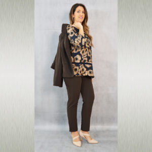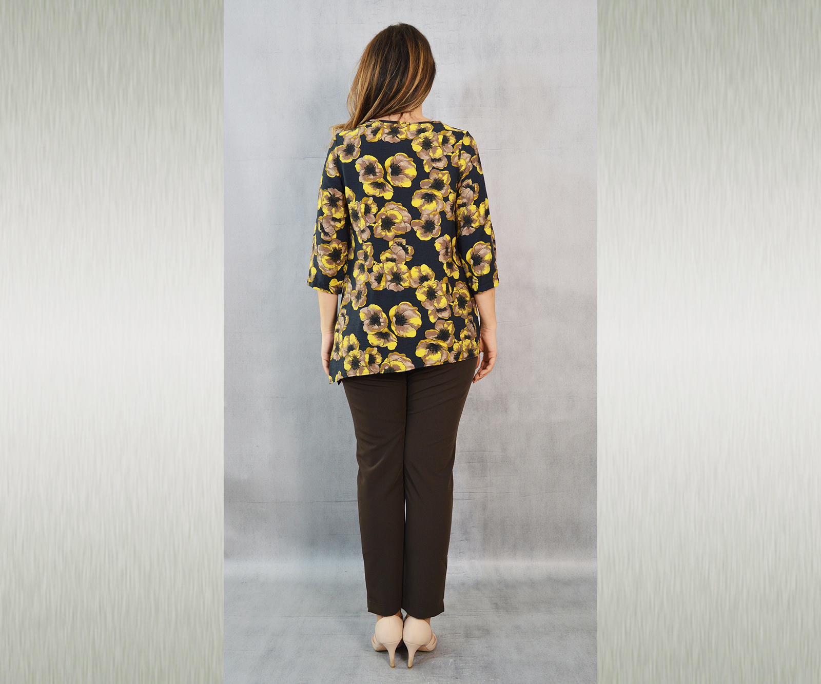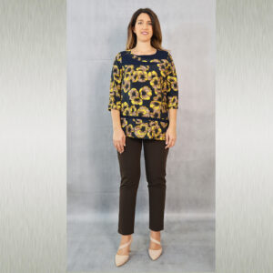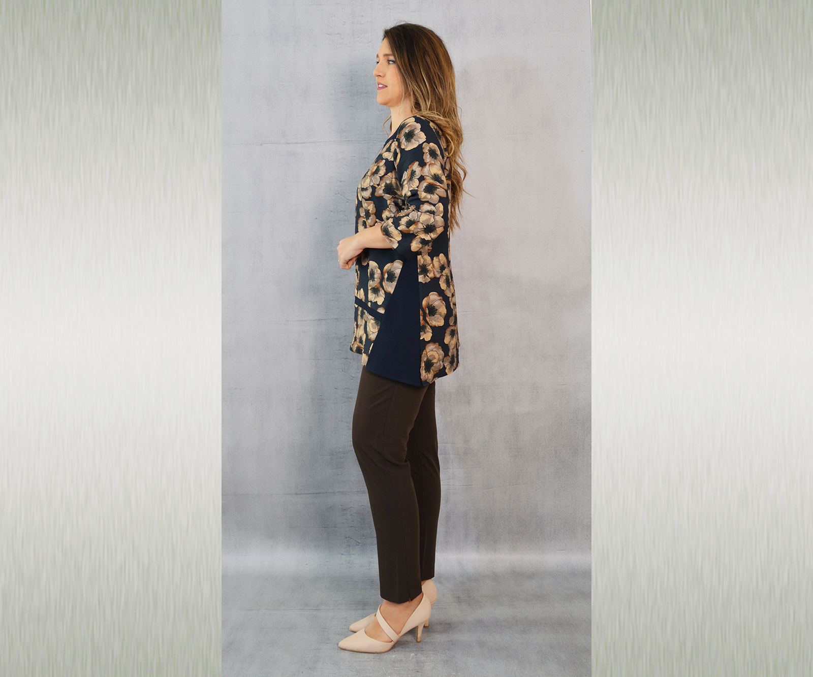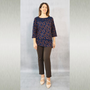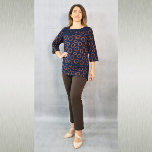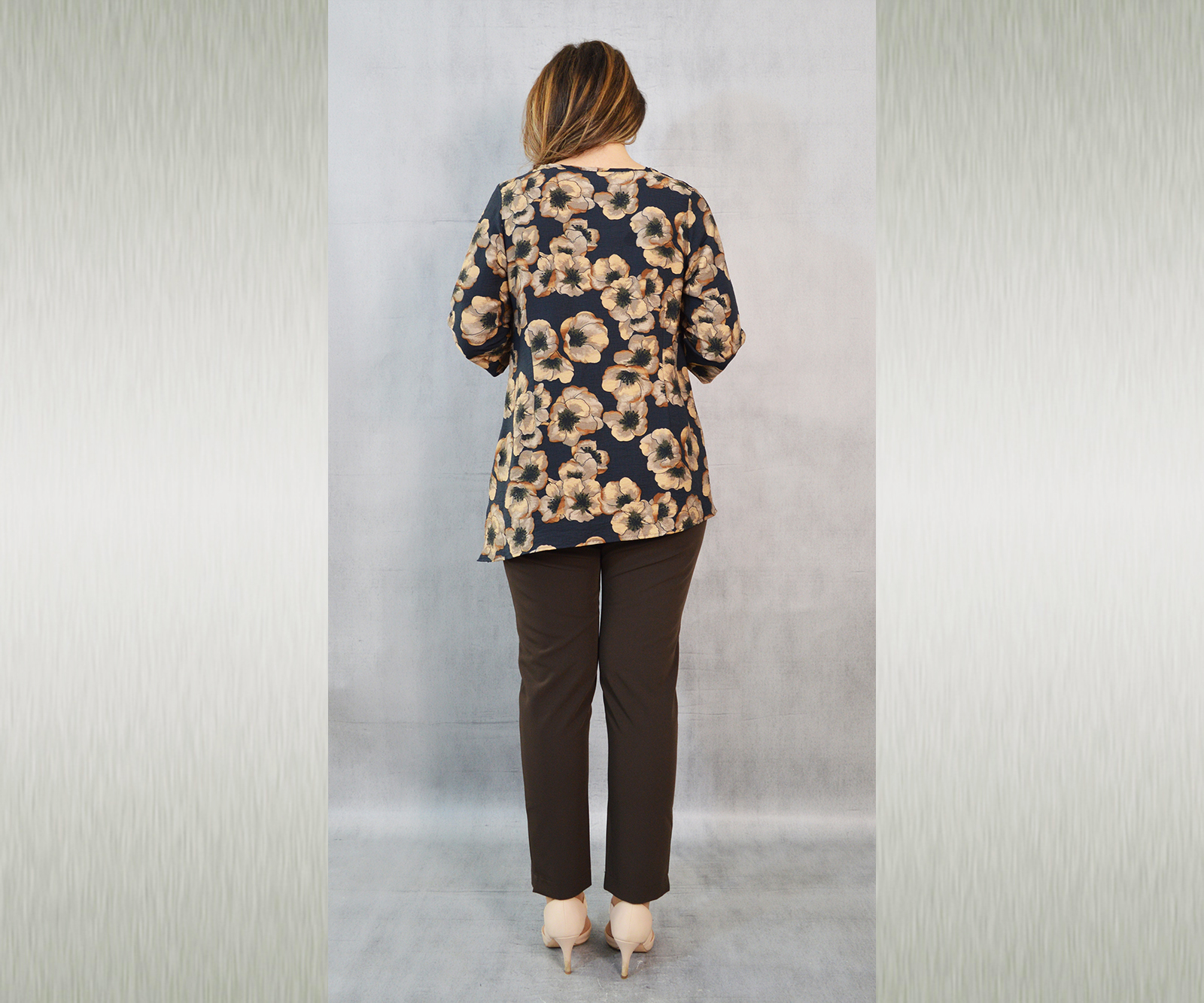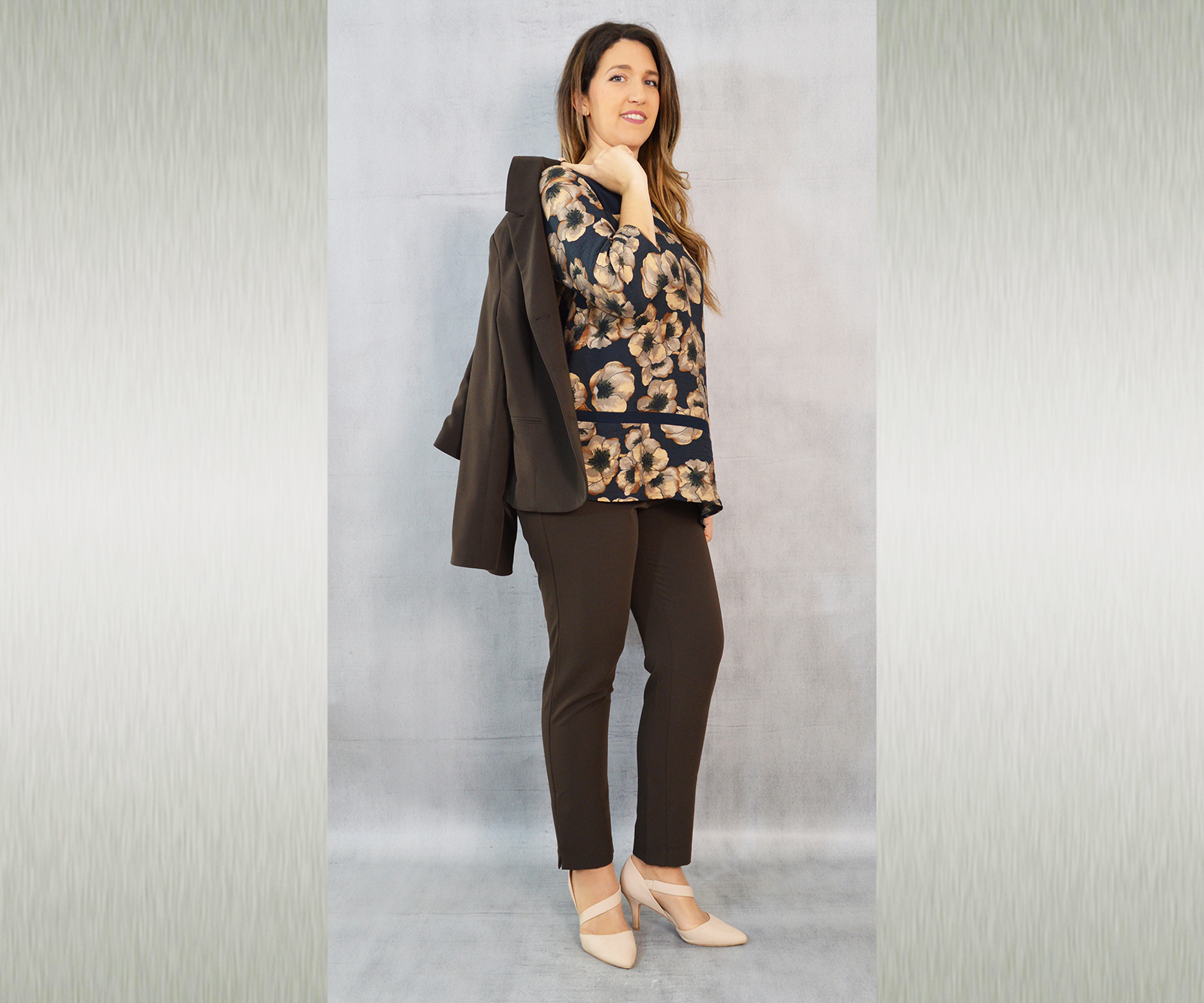 Tunika Milica dostupna je u tri uzorka u kombinaciji s jednobojnom tamnoplavom tkaninom. Asimetričnog je kroja i savršen odabir za svakodnevne poslovne prilike te sve one u kojima se želite osjećati ugodno. Napravljena je od kvalitetne viskoze i lako se može kombinirati uz tamnoplave ili smeđe svečane hlače koje također možete pronaći u našoj ponudi u brojnim modelima.