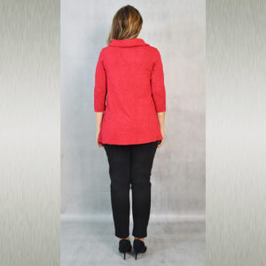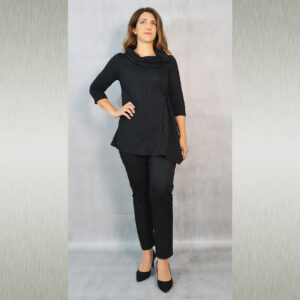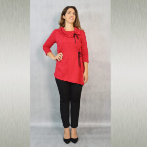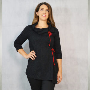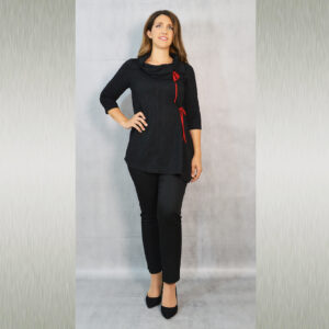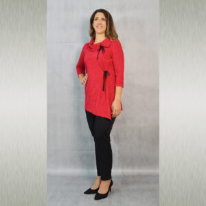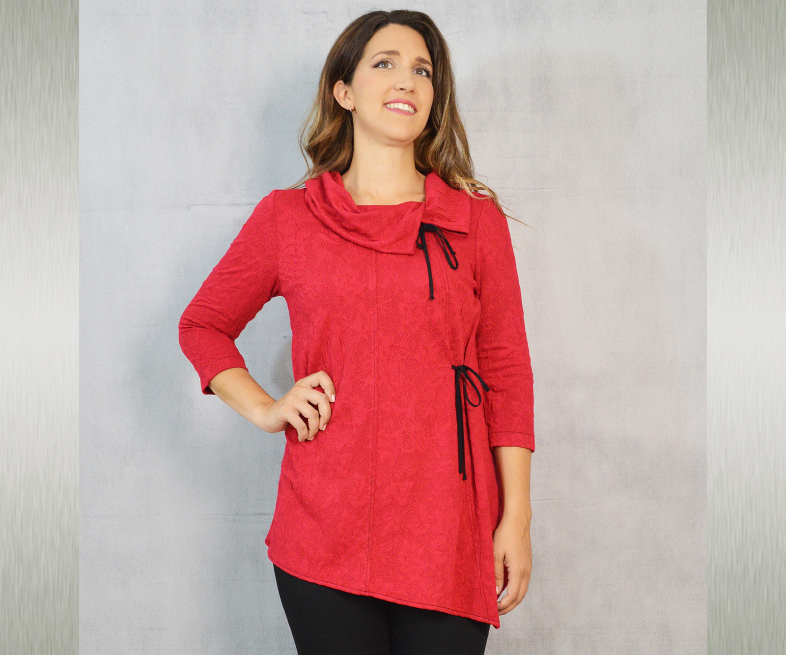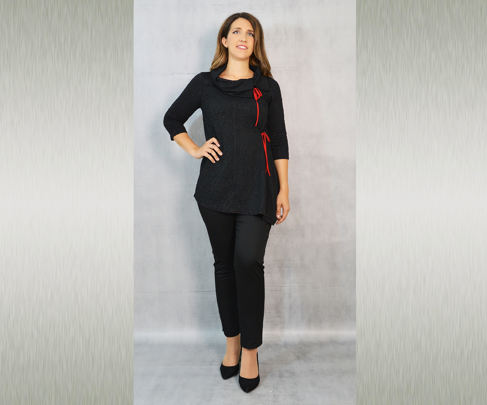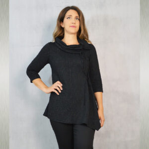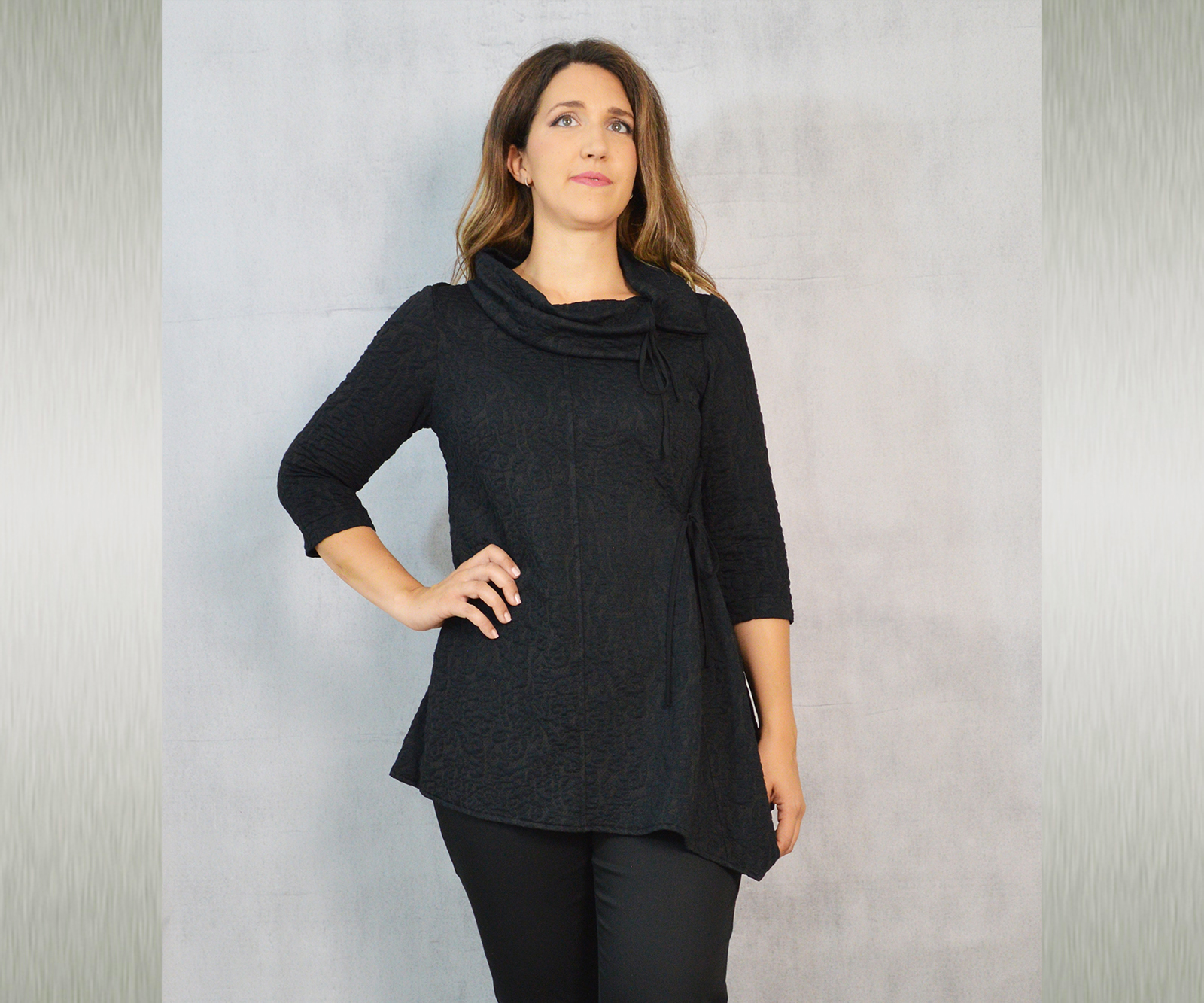 Tunika Vjera asimetričan je model idealan za toplije dane. Napravljena je od ugodnog materijala i savršeno će pristajati uz elegantnije hlače. Rukavi duljine 3/4 daju joj na profinjenosti. Ima po dvije vezice, jednu pri kragni, a drugu u struku.