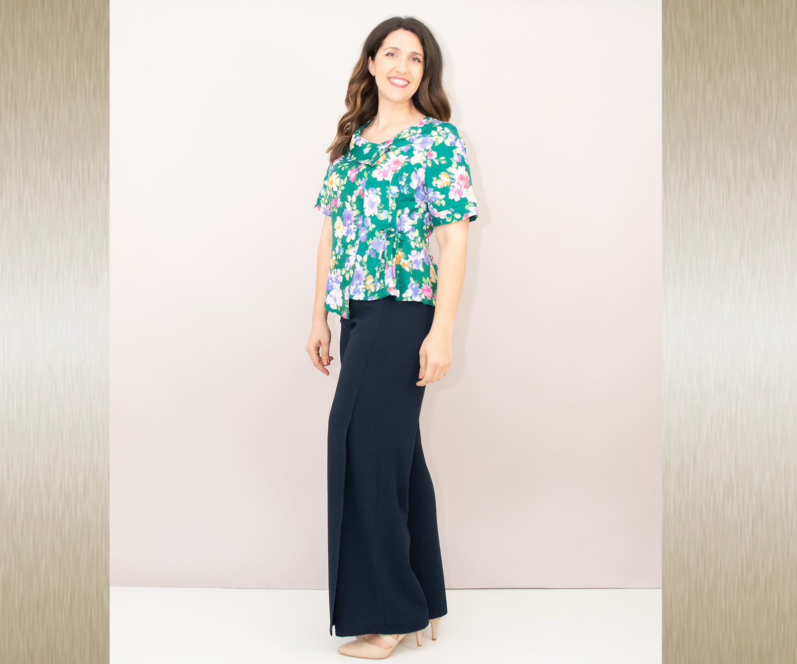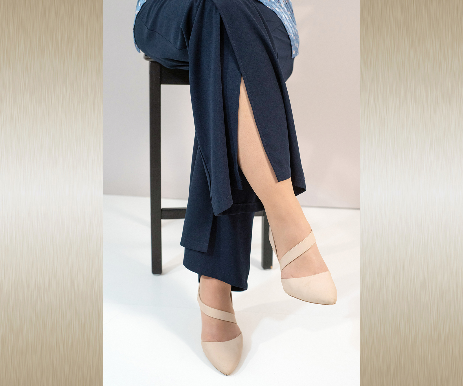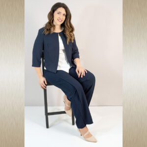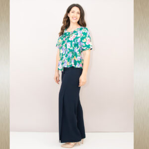 Elegantne široke hlače s prorezom od koljena do dolje. U svom sastavu sadrže i elastin te su prilagodljive tijelu i vrlo ugodne za nošenje.