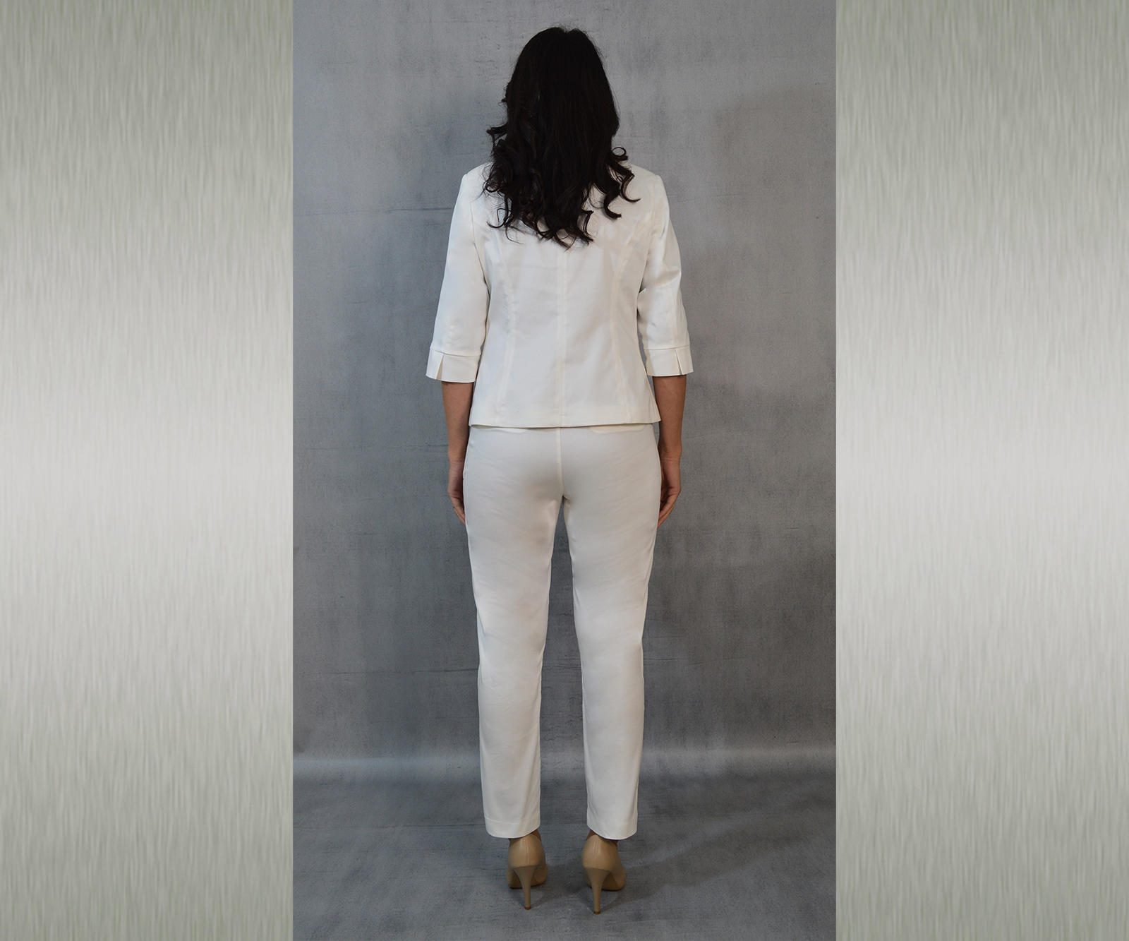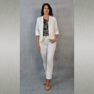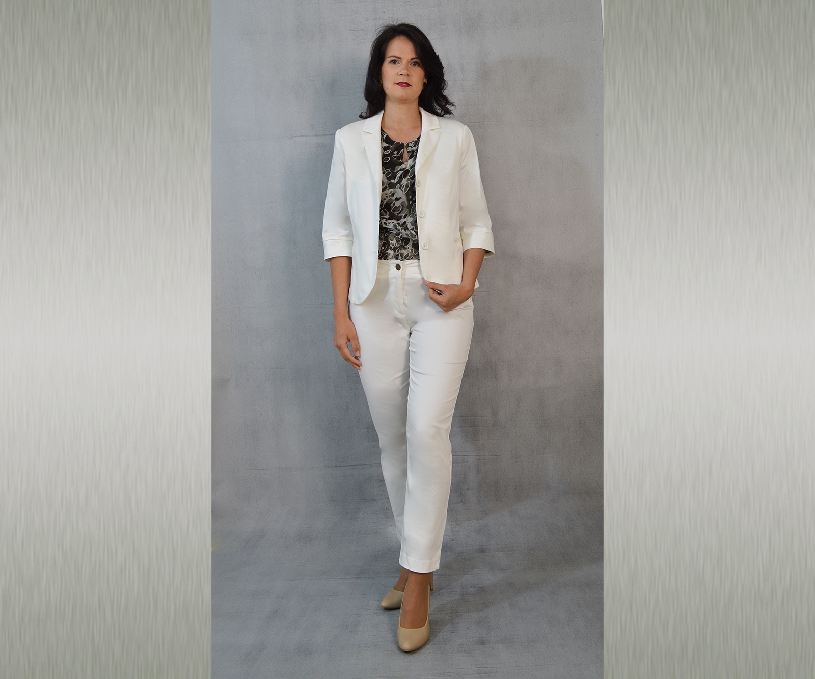 Hlače Melita vrlo su ugodne za nošenje, napravljene od pamučne tkanine s elastinom. Nešto dulje od 7/8 duljine. Savršene za tople dane. Čine komplet sa bijelim sakoom Rafaela II i tamnoplavim sakoom Rafaela.