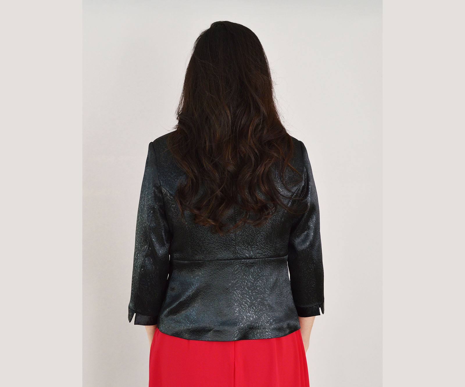 Elegantni profinjeni crni sako s 3/4 rukavima savršen za kombiniranje uz crne ili sive svečane hlače ili suknju. Odjenite ga uz vedre ili neutralne boje bluze ili topa kako biste ga istaknuli.