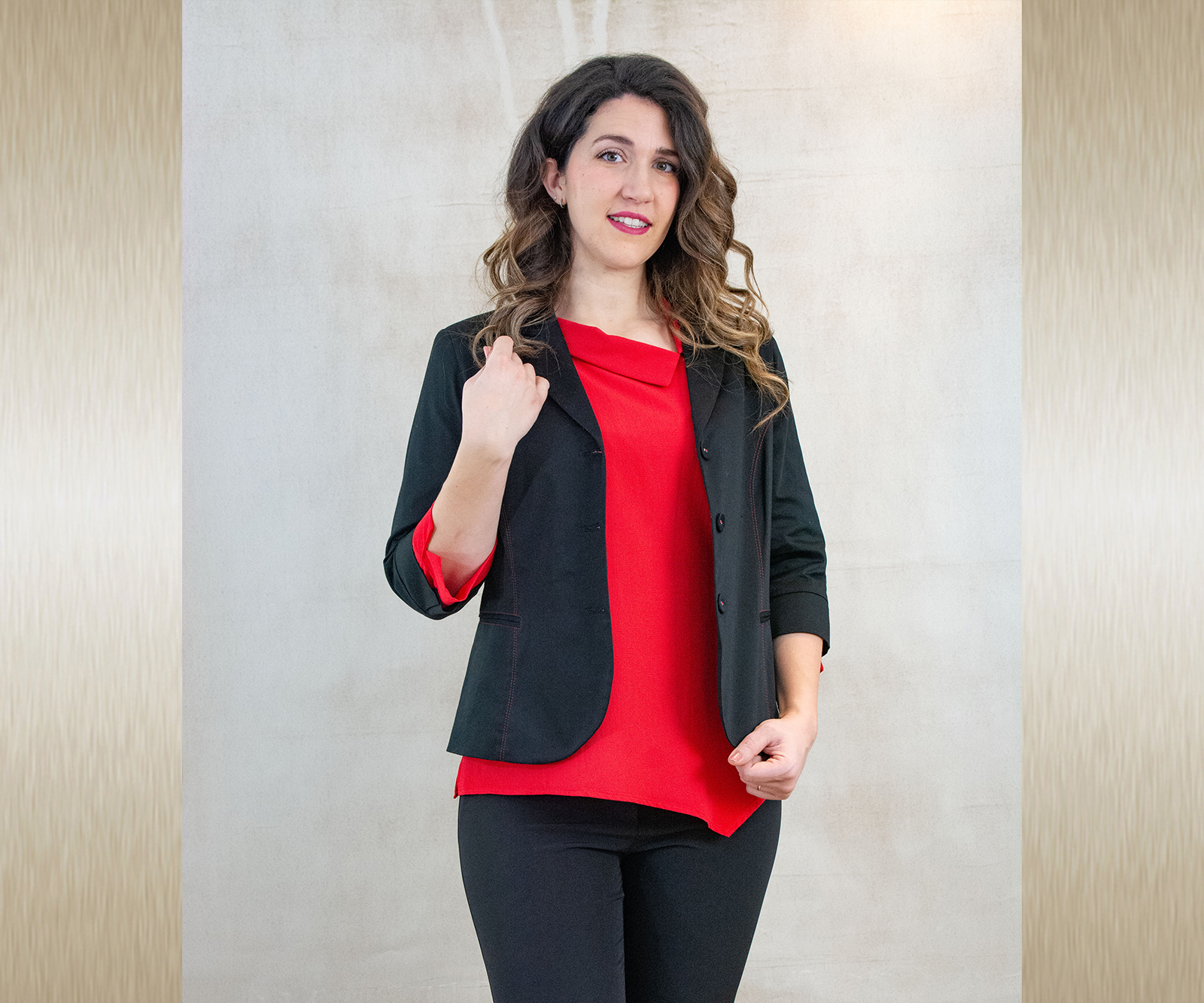 Udobni keper sako u crnoj i plavoj boji idealan uz razne kombinacije za poslovne i svečane prilike.