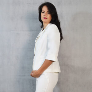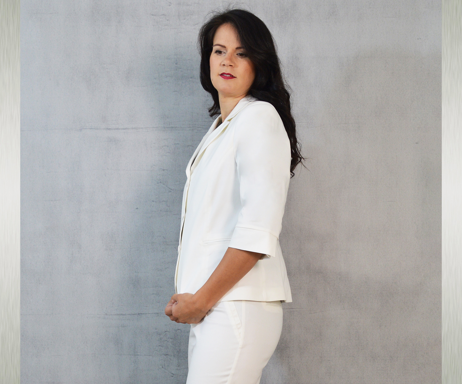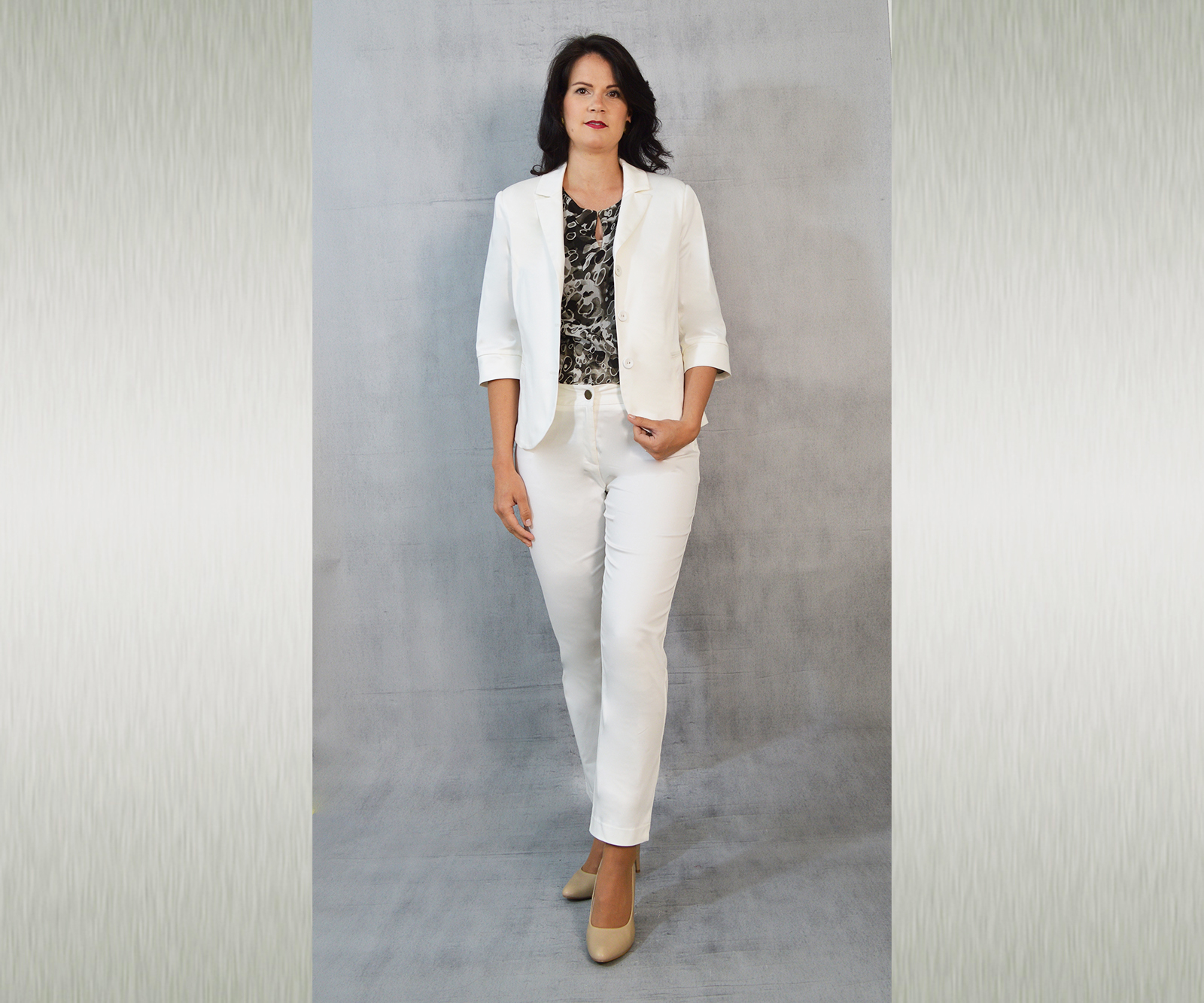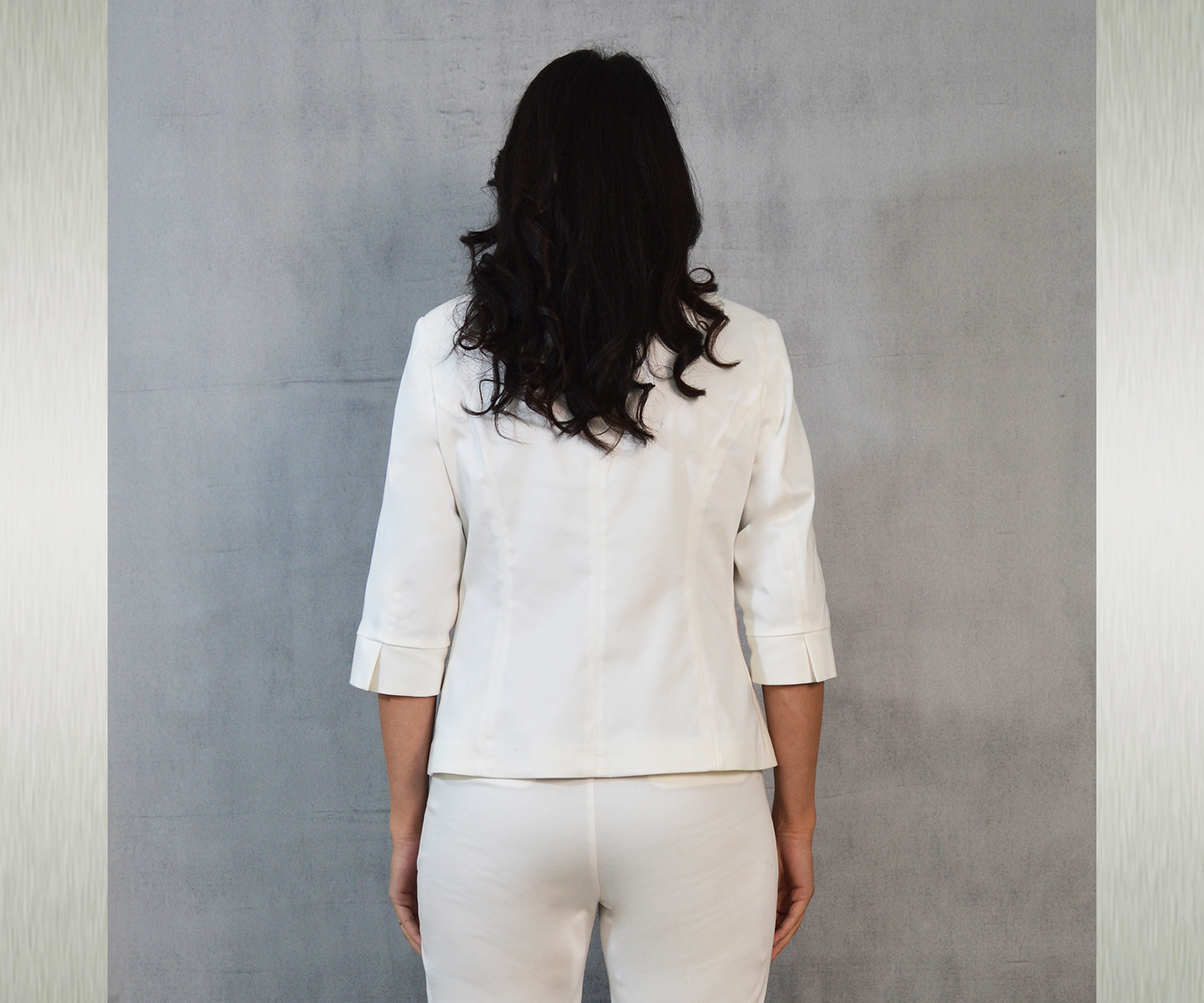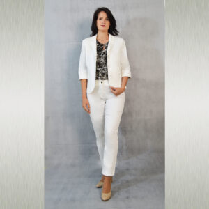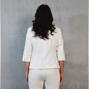 Udobni keper sako u bijeloj boji idealan uz razne kombinacije za poslovne i svečane prilike.