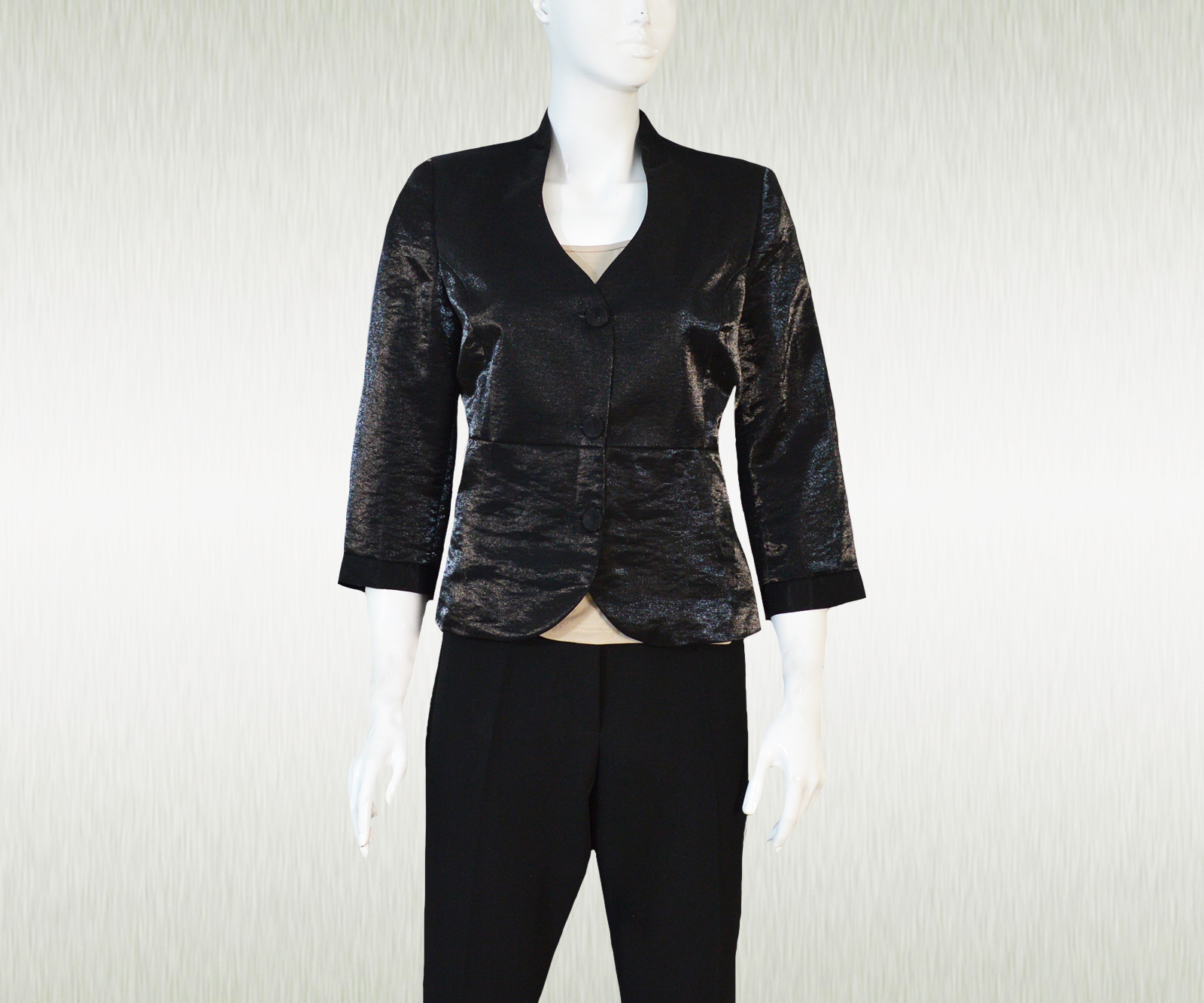 Elegantni profinjeni crni sako s 3/4 rukavima savršen za kombiniranje uz crne ili sive svečane hlače ili suknju. Odjenite ga uz vedre ili neutralne boje bluze ili topa kako biste ga istaknuli.